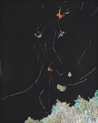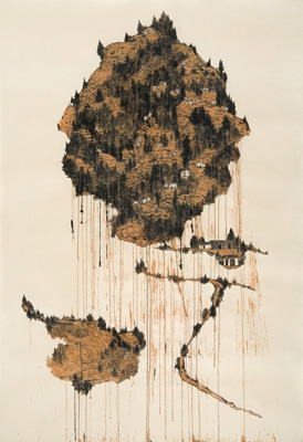 Nature(自然) - As I climb up the mountain, I notice the significant difference between the mountain’s ridge and the skyscrapers’ height. When I examine the building’s human constructed high altitude, I realize how meaningless to have such high desires in life. Throughout the history, mountain has contributed a lot to humans. As a spiritual idol and a basis in our daily life, mountain has delivered us a universal experience. Mountain is a sacred space with a generic origin, a pure space filled with diverse sounds of creatures, and a natural space all around. For me, depicting mountain is unveiling the nature’s origin through personal experiences and discovering my mind(精神). Rather than a picture in perspective, I prefer a picture in synesthesia. It is neither illusion nor perspective representation. It is portraying what I feel through my own body and eyes. It is not just an object’s simple reproduction. Rather it is a manifestation of a sensual landscape which puts together one’s eyes and mind that pursue all the actual landscape in every detail. It is a sort of pictorial book and a recreation of the visible reality in a panorama form. October, 2009 at Seoul Art Space_Geumcheon